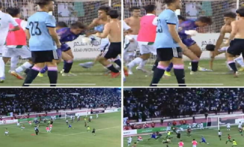 واختتمت المباراة باشتباكات عنيفة بين لاعبي المنتخبين، مما استدعى تدخل الأجهزة الفنية لفض الشجار.