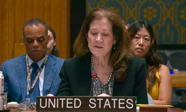 السفيرة دوروثي شيا، القائمة بأعمال مندوبة الولايات المتحدة، واشنطن تعمل بلا كلل لتحرير الرهائن، وإنهاء هذه الحرب، ومنح المدنيين في غزة مستقبلًا خاليًا من حماس.