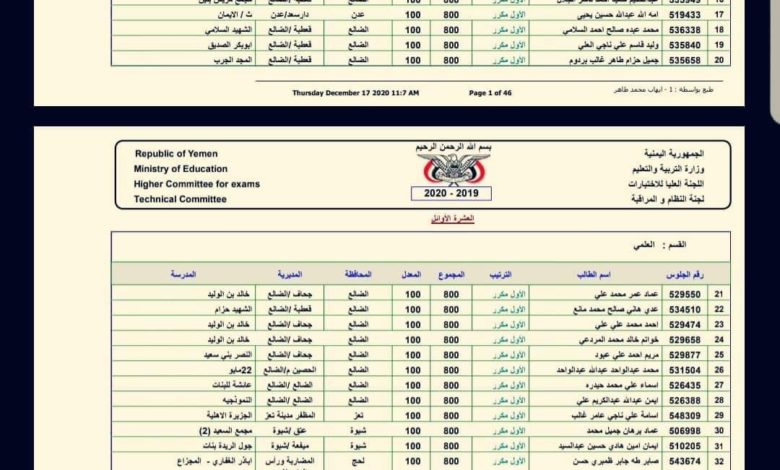 وأقرب مثل على هذا العبث الذي يستهدف التعليم و مستقبل وطن ومصير شعب نتيجة الثانوية العامة القسم العلمي التي  اعلنتها حكومة الشرعية والتي هي فضيحة اخلاقية وتعليمة وتربوية بكل المقاييس .. 300 طالب وطالبة يحصلون على المركز الأول على مستوى الجمهورية وبدرجة 100% وليس هذا فقط كل هؤلاء من محافظة واحدة هي محافظة الضالع