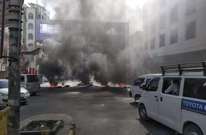 وأشارت إلى أن المحتجين أغلقوا عدة شوارع رئيسية وفرعية في المدينة أبرزها شارع جمال وادي القاضي وحوض الأشراف والثورة ودوار سنان ومنعوا حركة المرور في تلك الشوارع بعد إضرام النار في إطارات مطاطية.