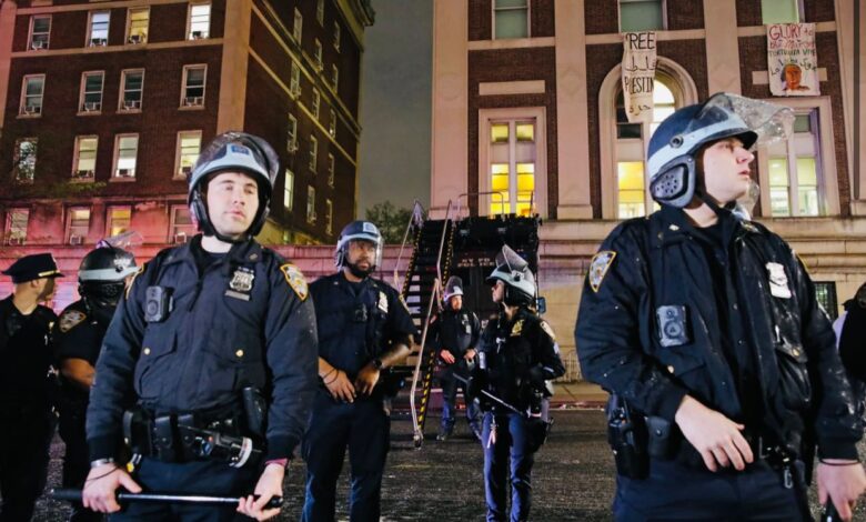 بعد انتهاء المهلة المحدد قوات الشرطه تقتحم حرم جامعة كولومبيا في منهاتن …