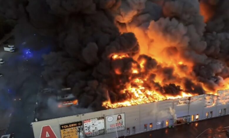 اندلع حريق، صباح الأحد، في مركز تسوق ضخم يضم 1400 متجر ومنفذ خدمات في منطقة بيالوليكا بالعاصمة البولندية وارسو.