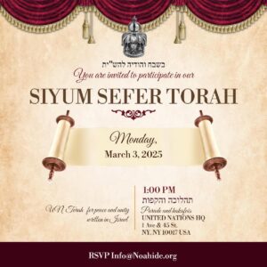 تم تكريس مخطوطة توراة بتكليف من الحاخام ياكوف ديفيد كوهين من معهد نوحايد، وهي منظمة غير حكومية تابعة للأمم المتحدة،