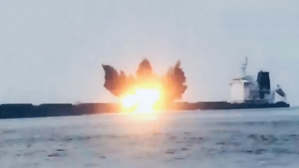 جماعة الحوثي تعرض مشاهدلاستهداف سفينة ” توتور ” وإغراقها في البحر الأحمر