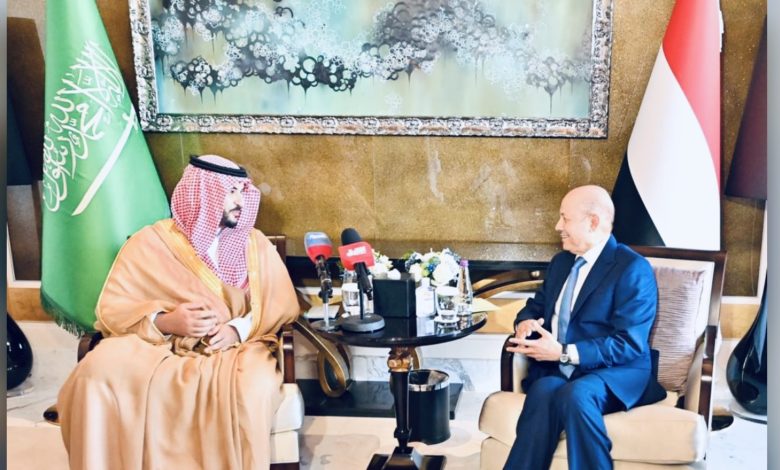 رئيس مجلس القيادة العليمي يبحث مع نائب وزير الدفاع السعودي سبل التسريع بالدعم الخليجي لليمن