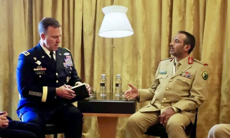 وزارة الدفاع الأمريكية أن قائد القيادة المركزية الأمريكية “سنتكوم” مايكل إريك كوريلا التقى خلال زيارته للرياض يومي الخميس والجمعة الماضيين رئيس أركان الجيش اليمني “صغير بن عزيز”.