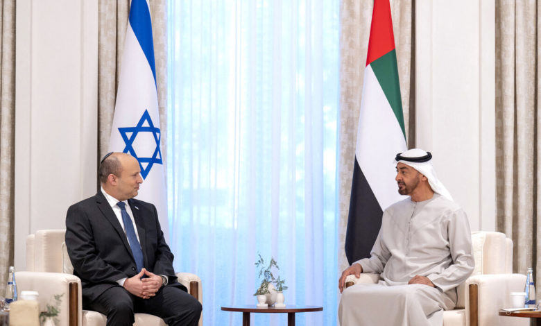 وبحث بن زايد وبينيت، حسب وكالة “وام” الإماراتية الرسمية، مسارات التعاون الثنائي وفرص تنميتها في مختلف الجوانب الاستثمارية والاقتصادية والتجارية والتنموية، خاصة مجالات الزراعة والأمن الغذائي والطاقة المتجددة والتكنولوجيا المتقدمة والصحة وغيرها من القطاعات الحيوية التي تحظى باهتمام متبادل، وذلك في إطار “اتفاق السلام الإبراهيمي” الذي وقعه الطرفان في العام الماضي.
