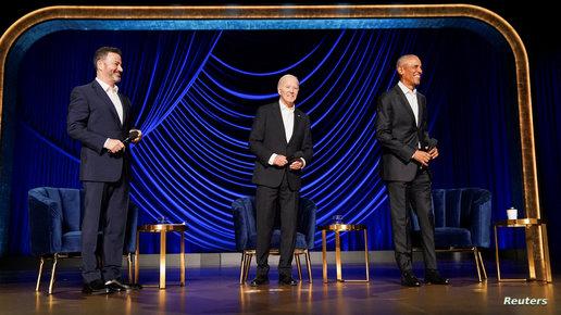 وشارك في ذلك الحفل، الرئيس الأميركي الأسبق باراك أوباما، ونخبة من نجوم هوليوود مثل جورج كلوني وجوليا روبرتس والكوميدي جيمي كيميل.