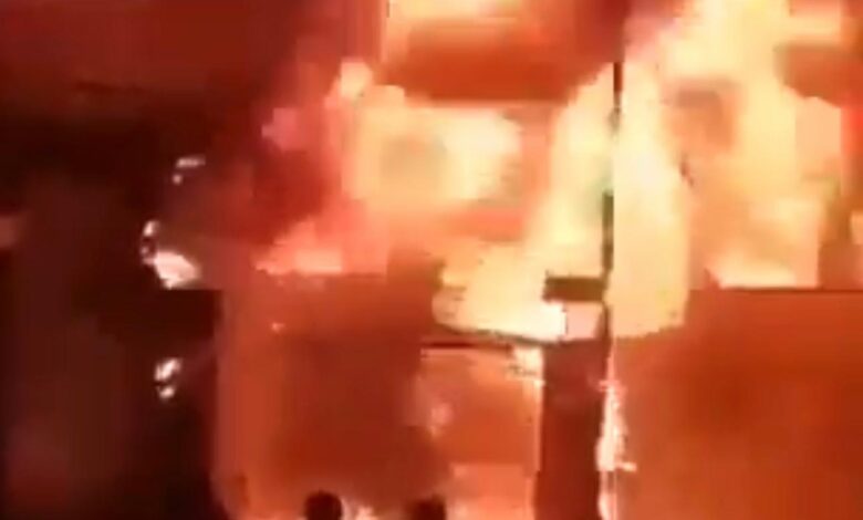 صورة المكان المستهدف يصعد لهب الحريق من بعد القصف