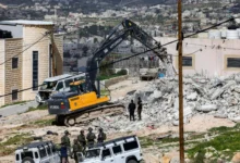 حفار تستخدمه قوات الأمن الإسرائيلية يهدم مبنى في قرية بيت غوا في الضفة الغربية المحتلة (أ.ف.ب) عين اليمن الحر…