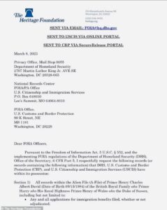 وتسعى مؤسسة “هيريتيج” وهي معهد أبحاث محافظ يركز على السياسة العامة، حاليا مع وزارة الأمن الداخلي (DHS) للحصول على نسخة من إيداعات تأشيرة دوق ساسكس بموجب قانون حرية المعلومات.