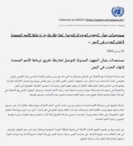 وأفاد بيان صادر عن مكتب المبعوث بأنه “يرحّب بتوصل الأطراف للالتزام بمجموعة من التدابير تشمل تنفيذ وقف إطلاق نار يشمل عموم اليمن (…) والانخراط في استعدادات لاستئناف عملية سياسية جامعة تحت رعاية الأمم المتحدة”.