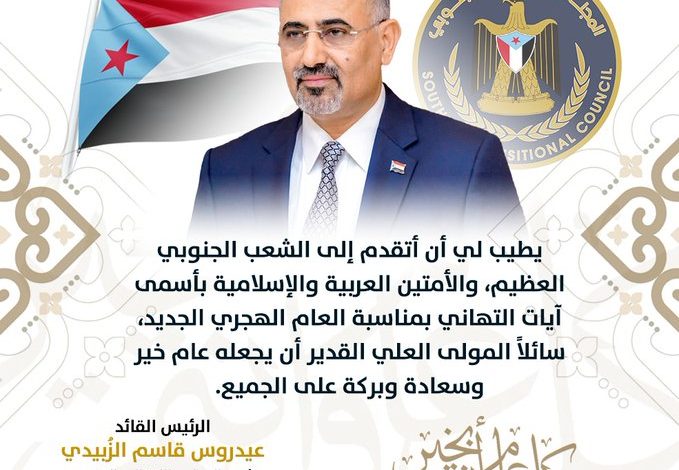 أثارت تهنئة بعثها “عيدروس الزبيدي” إلى الشعب الجنوبي بمناسبة بداية العام الهجري، سخط ومخاوف العديد من القيادات السياسية والإعلامية الموالية للتحالف.