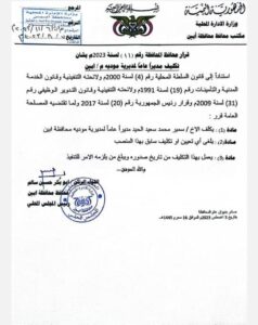 تعيين متهم بالقتل فار من وجة الغدالة مديرا عاما في أبين”وثائق”