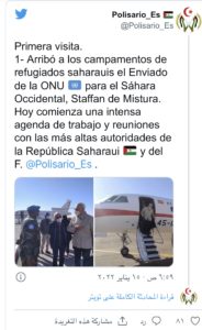 وكان المبعوث قد استهل زيارته إلى المنطقة الأسبوع الماضي بزيارة المغرب، وسيتوجه الأسبوع المقبل إلى الجزائر وموريتانيا.