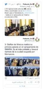 وعقب لقاء دي ميستورا أكد المسؤولون المغاربة “التزام البلاد باستئناف العملية السياسية التي تجري تحت رعاية حصرية للأمم المتحدة”.
