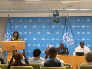 السفير  مايكل عمران كانو، الممثل الدائم لسيراليون لدى الأمم المتحدة ورئيس مجلس الأمن لشهر أغسطس