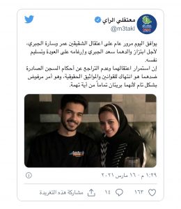 إن استمرار اعتقالهما وعدم التراجع عن أحكام السجن الصادرة ضدهما هو انتهاك للقوانين والمواثيق الحقوقية، وهو أمر مرفوض بشكل تام لأنهما بريئان تماماً من أية تهمة.