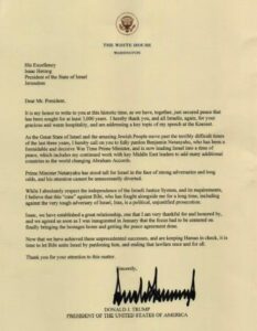 تلقى الرئيس الإسرائيلي يتسحاق هرتصوغ رسالة رسمية من الرئيس الأمريكي دونالد ترامب، دعا فيها إلى منح عفو لرئيس الوزراء بنيامين نتنياهو.