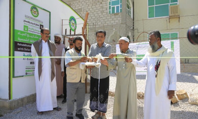 كما اطّلع الحاضرون على مشروع بئر “سقيا البادية”، الذي تم تأهيله أيضًا بمنظومة طاقة شمسية تضم 17 لوحًا شمسيًا بقدرة تشغيلية إجمالية 12.7 كيلووات، وغاطس بقدرة 7.5 كيلووات على عمق 180 مترًا، وانفرتر 11 كيلووات، ويُعد هذا البئر رافدًا مهمًا لأحياء واسعة من مديرية القطن خصوصًا في فترات انقطاع الماء.