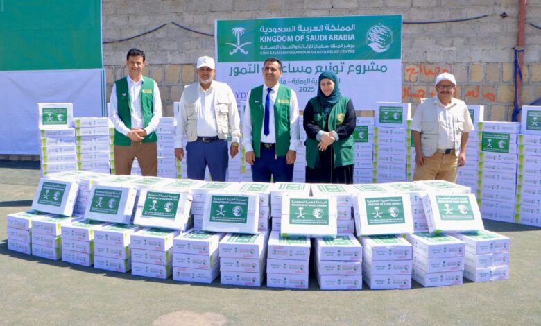 مركز الملك سلمان: يدشن توزيع 15 ألف كرتون تمور للنازحين بمحافظة مأرب