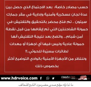 وأضاف “صدى حضرموت”، حمولة الشاحنتين لا تحتوي على أي أجهزة أو معدات لطائرات مسيرة تابعة لـ “الحوثي”، كما ادعت وسائل إعلام موالية لـ”الانتقالي الجنوبي”