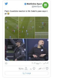 ونشرت صحيفة “MailOnline Sport” البريطانية، صورة لغوارديولا وهو يتحسر على تلقي فريقه لذلك الهدف وعلقت: “رد فعل بيب غوارديولا على تمريرة محمد صلاح يفسر كل شيء”، في إشارة إلى روعة التمريرة.
