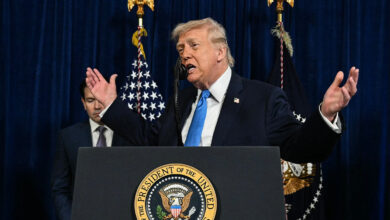 U.S. President Donald Trump speaks at a news conference at his Mar-a-Lago residence in Palm Beach, Florida, on Jan. 3,…