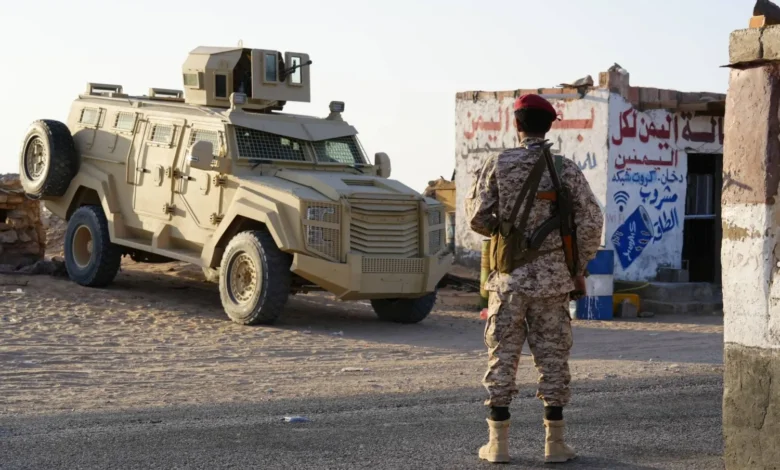 قوات «درع الوطن» التابعة للرئاسة اليمنية خلال تأمين إحدى النقاط العسكرية بحضرموت (حساب درع الوطن)