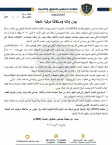 داعياً المجتمع الدولي، وفي مقدمته مجلس الأمن والمفوضية السامية لحقوق الإنسان، إلى اتخاذ إجراءات عاجلة وفعالة، تشمل فتح تحقيق دولي مستقل ومحاسبة المتورطين، إضافة إلى توفير حماية فورية للمدنيين في تعز، والعمل على رفع الحصار، بما يضمن وقف هذه الجرائم وتحقيق العدالة للضحايا.