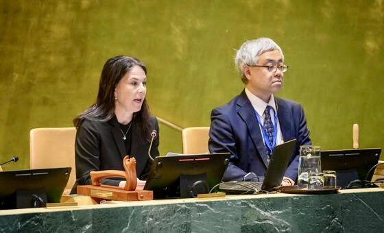 في إطار مبادرة اعتمدتها عام 2022، اجتماع في الجمعية العامة حول استخدام الفيتو ضد مشروع قرار بحريني بشأن مضيق هرمز