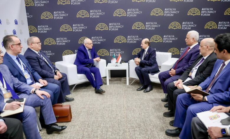 التقى دولة رئيس مجلس الوزراء وزير الخارجية وشؤون المغتربين الدكتور شائع محسن الزنداني اليوم على هامش الدورة الخامسة لمنتدى أنطاليا الدبلوماسي، وزير الشؤون الخارجية والجالية الوطنية بالخارج بالجمهورية الجزائرية الديمقراطية الشعبية أحمد عطاف ووفقاً لوكالة سبأنت الحكومية فقد .