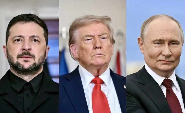ترامب يتوسط بوتين (يمين) وزيلينسكي (وكالات