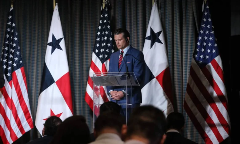 وزير الدفاع الأميركي بيت هيغسيث خلال مؤتمره الصحافي في بنما (أ.ف.ب)