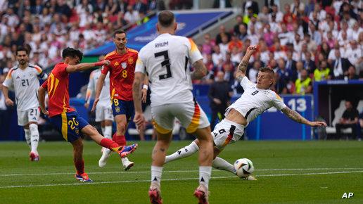 وخرج بيدري من الملعب في الدقيقة الثامنة من مباراة الجمعة، التي انتهت بفوز إسبانيا بهدفين مقابل هدف، بفضل هدف الفوز الذي أحرزه نجم وسط بوروسيا دورتموند ميكل ميرينو في الدقيقة الأخيرة من الوقت الإضافي، الذي صنعه داني أولمو، بديل بيدري، صانع هدف إسبانيا الأول في المباراة.