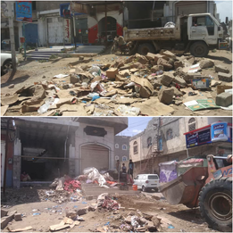إدارة الاسواق بصندوق نظافة وتحسين م | تعز تنفذ المرحلة الثانية من حملة ازالة مخالفات استخدام الشوارع والارصفة.