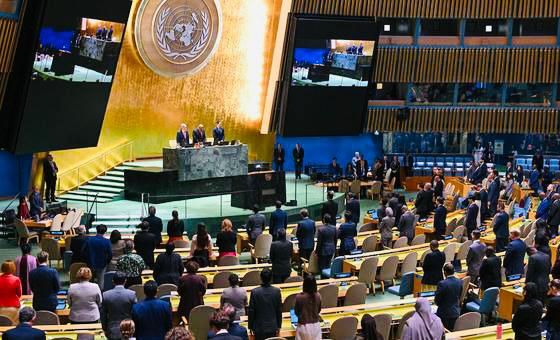 “دعونا نرتقي إلى مستوى المناسبة. “دعونا نفي بالوعود التي قطعناها ولنعمل معًا في تضامن لبناء مستقبل يكرم آمال وأحلام جميع الشعوب ويوحد الأمم حقًا … كما قال نيلسون مانديلا العظيم ذات مرة، “يبدو الأمر دائمًا مستحيلًا حتى يتم إنجازه”.