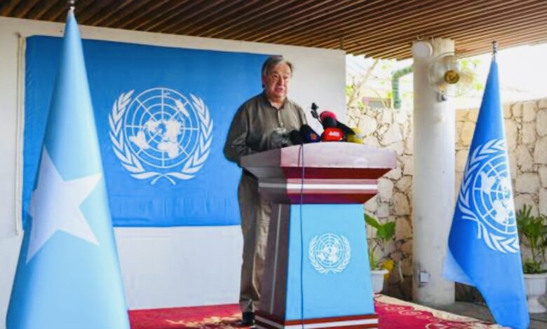 وقال الأمين العام: “اليوم، يلوح الخطر مرة أخرى. يسبب تغير المناخ الفوضى. شهد الصومال شحا في الأمطار لمدة خمسة مواسم متتالية، وهذا أمر غير مسبوق … المجتمعات الفقيرة والضعيفة دفعها الجفاف إلى حافة المجاعة، ويمكن أن يزداد الوضع سوءا”.