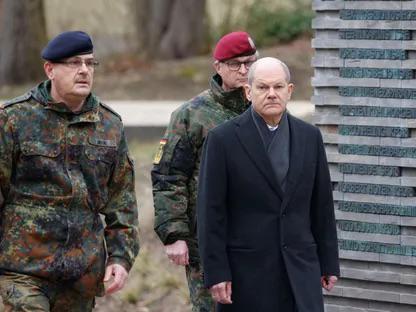 المستشار الألماني أولاف شولتز يزور قيادة عمليات الجيش الألماني في شويلوز. 4 مارس 2022 – REUTERS