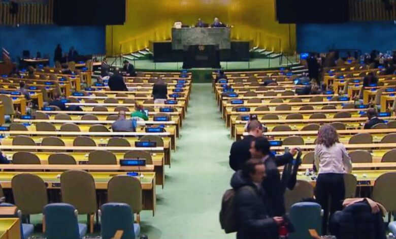 الجمعية العامة تعقد جلسة لمناقشة استخدام حق النقض الفيتو ضد تعديل مشروع قرار بشأن غزة من قبل الولايات المتحدة