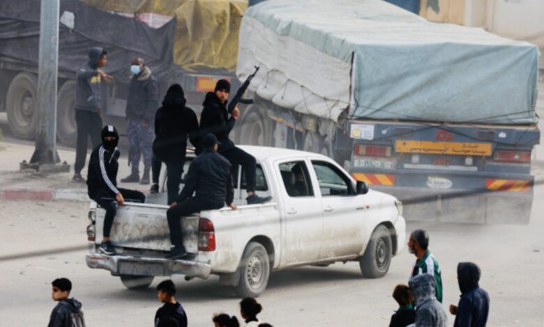مسلحون يرافقون شاحنة تحمل مساعدات في قطاع غزة