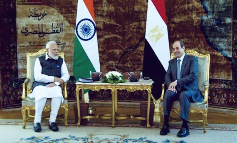 كما قام الرئيس بتقليد رئيس الوزراء الهندي بقلادة النيل، التي تمثل أرفع الأوسمة المصرية، وأعظمها شأناً وقدراً.