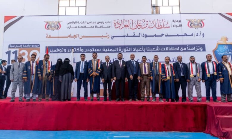 اللواء العرادة يشهد حفل تخرج 1139 طالباً وطالبة في جميع التخصصات بجامعة إقليم سبأ
