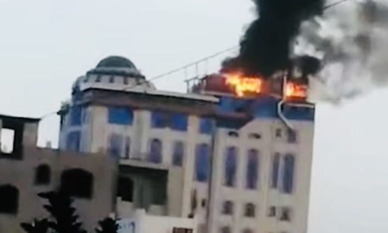 اندلاع حريق في أحد اكبر فنادق محافظة إب اليمن