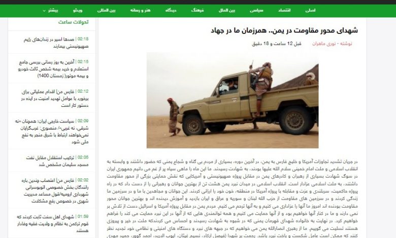 وتعهد الموقع المقرب من النظام الإيراني، بمواصلة دعم بلاده للحوثيين بكل الإمكانيات المتاحة للمساهمة فيما وصفه بمواجهة المشروع الأمريكي والإسرائيلي في المنطقة.