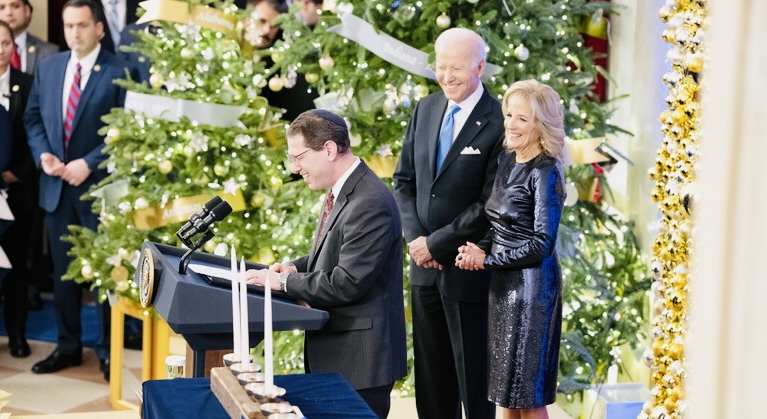 بايدن : في حفل إضاءة الشمع بمناسبة “عيد الحانوكا” اليهودي. في البيت الأبيض قال أنا صهيوني