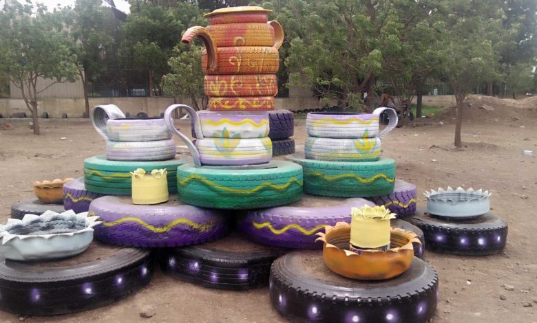بدعم من صندوق نظافة وتحسين تعز ..تحويل الإطارات المستعملة لمناظر جمالية رائعة تزينت بها حديقة الحوبان
