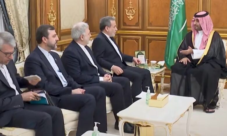 تحليل لقاء محمد بن سلمان مع وزير خارجية إيران “بتوقفه القصير” يثير تفاعلا
