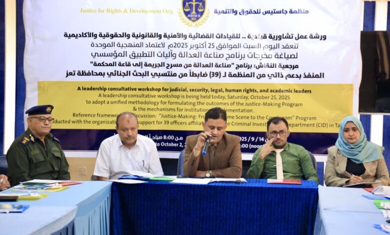 تعز: منظمة جاستيس تعقد ورشة عمل لصياغة ميثاق عمل إجرائي موحد