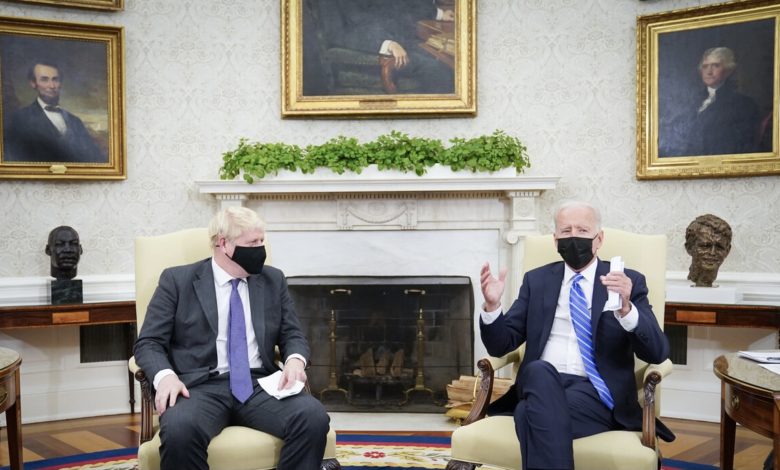 وقال المتحدث باسم جونسون في أعقاب مباحثاته مع بايدن في البيت الأبيض، يوم الثلاثاء، إن “رئيس الوزراء والرئيس بحثا عددا من القضايا الدولية، بما في ذلك الصين وروسيا. واتفقا على أن بريطانيا والولايات المتحدة ستتعاملان مع تلك القضايا على أساس القيم المشتركة”.